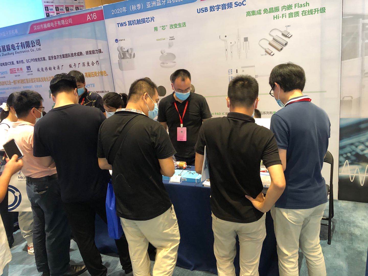 On August 20, 2020, the company was invited to participate in the 2020 Autumn Asia Bluetooth Headset Exhibition held in Shenzhen Kexing Science Park. We mainly displayed two series of products, TWS headset touch chip and USB digital audio SoC. Our touch chip has high reliability, internal debounce circuit, stable performance, low power consumption, high sensitivity, anti-interference, sensitivity self-calibration, fast wake-up response from sleep, diverse output application modes, and optional button output reset time; our The USB digital audio SoC series products have high performance, high integration, low power consumption, high cost performance, and performance at the leading level in the same industry, which aroused the strong interest and wide attention of many exhibitors. In particular, we independently designed the TWS headset touch chip, which has become the focus of this exhibition with its super high cost performance.