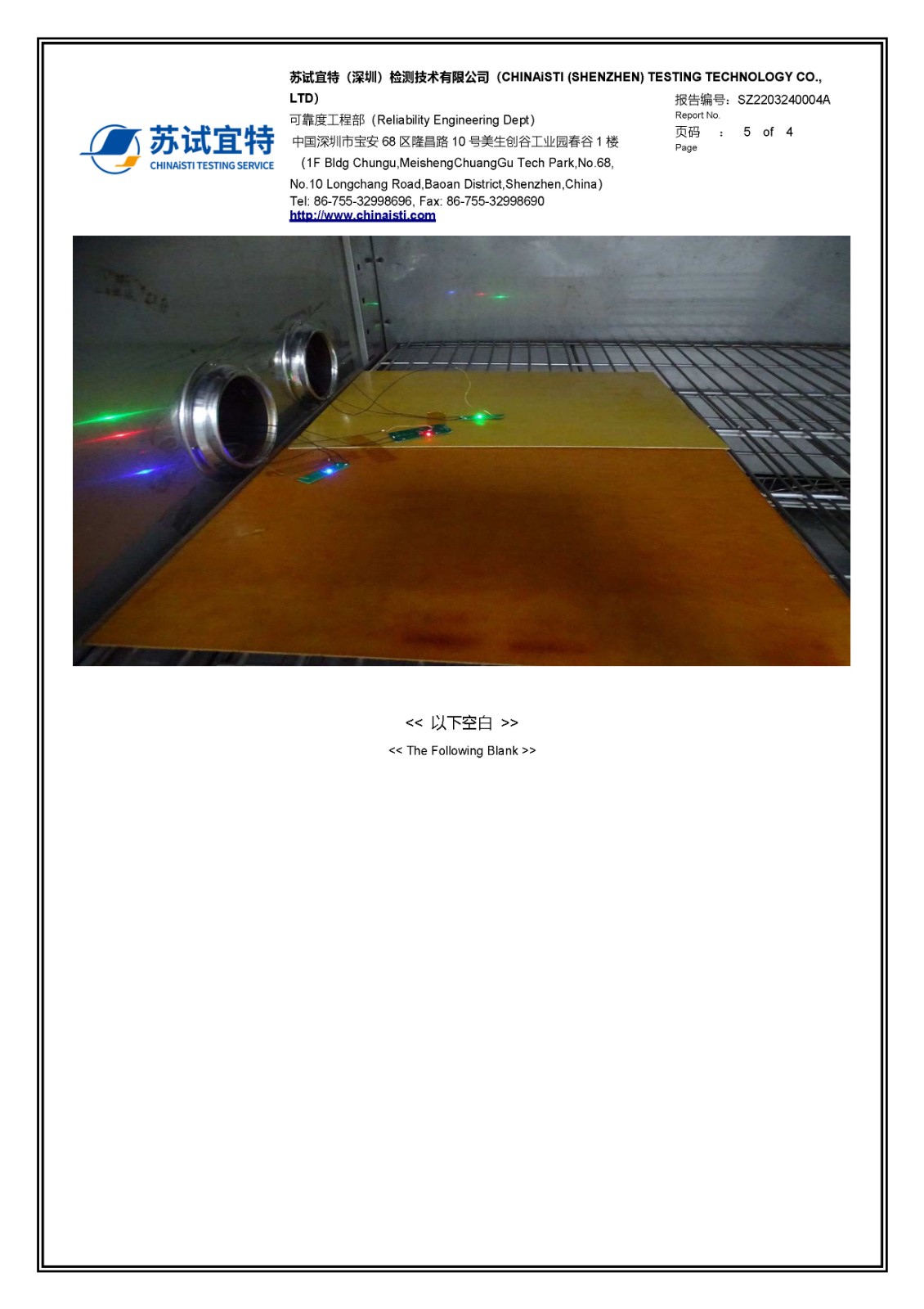> Temperature and humidity cycle test report
