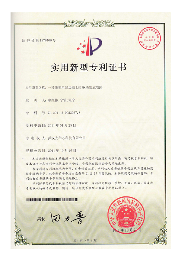 實用新型專利證書