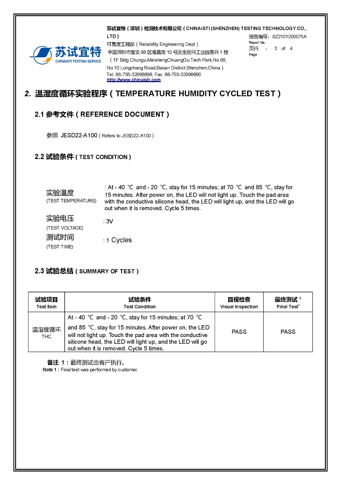 CT8233LF_溫濕度循環(huán)試驗報告