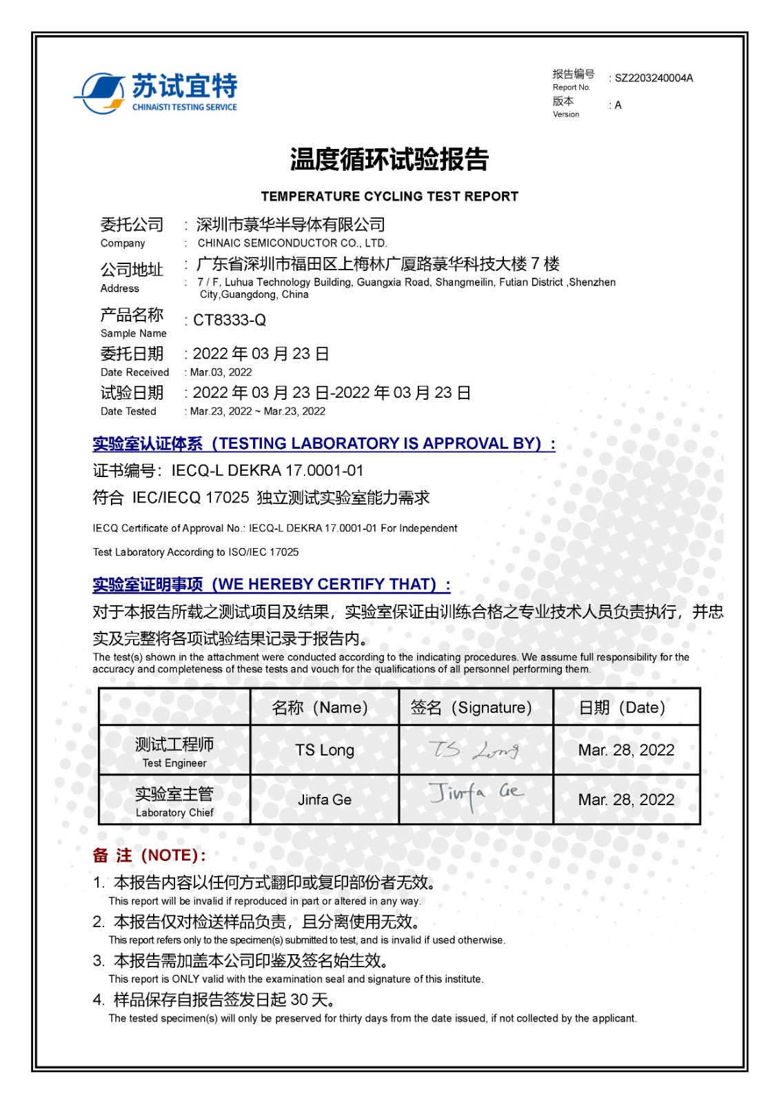 CT8333-Q DFN6_溫度循環(huán)試驗(yàn)報(bào)告
