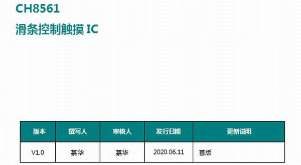 滑條控制IC CH8561_Datasheet_V1.0規(guī)格書發(fā)行,需要了解的請您聯(lián)系我司。